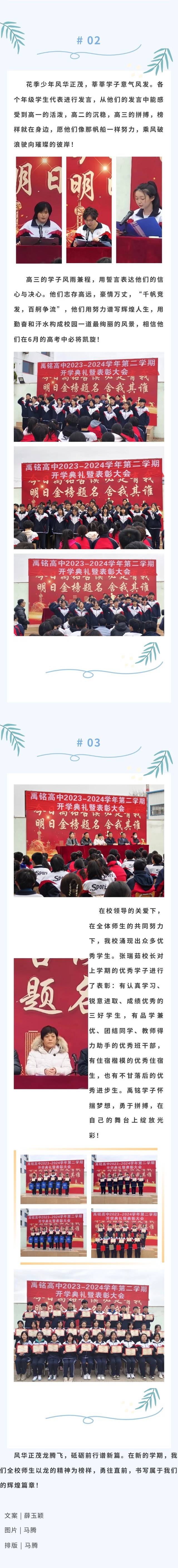 禹铭艺术高中2023~2024学年度第二学期开学典礼暨表彰大会