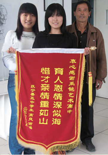 (左)谢晗考入井冈山大学(中)高爽考入中国环保学院(右)高爽家长